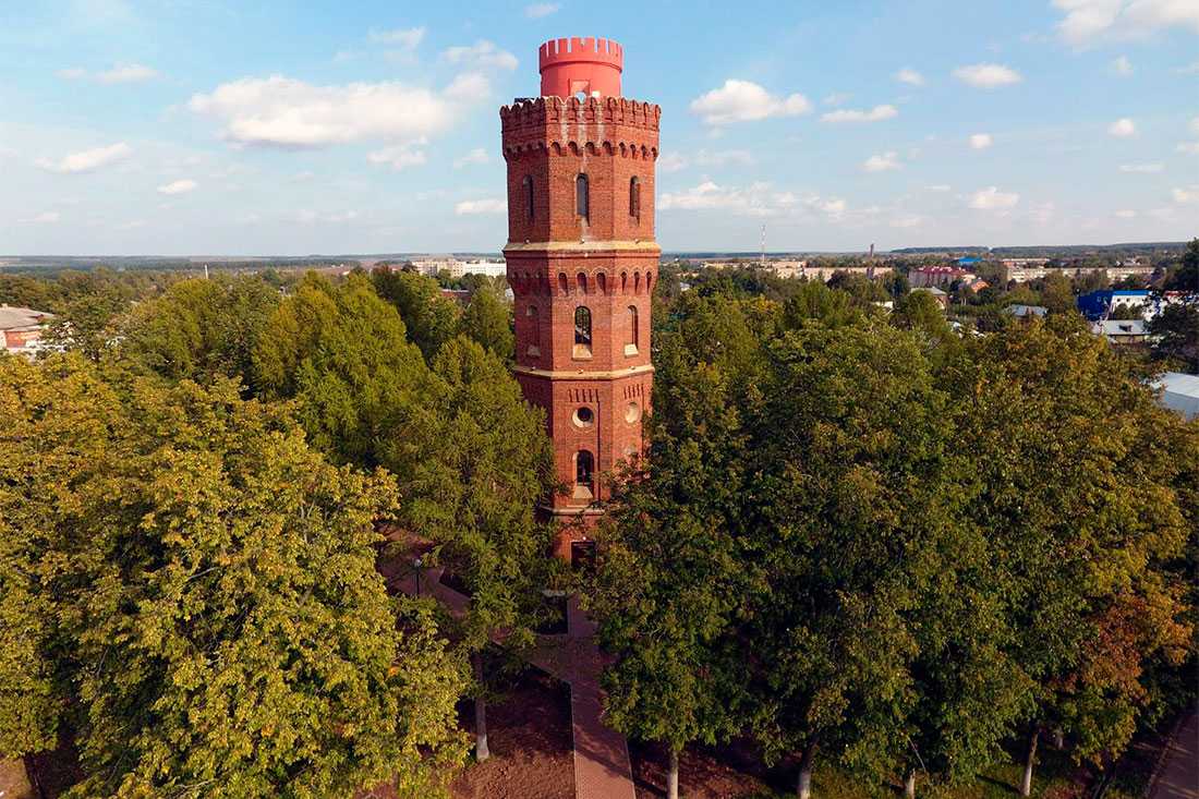 Зачем посещать. Башню украшают декоративные «бойницы» – машикули, а также круглые окна и кирпичный городчатый пояс. Ее можно осмотреть, прогуливаясь в расположенном рядом сквере. Высота конструкции – около 29 метров, на верхнем ярусе есть смотровая площадка, на которую можно забраться, чтобы полюбоваться городом и окрестностями. Вечером на башне включается подсветка.