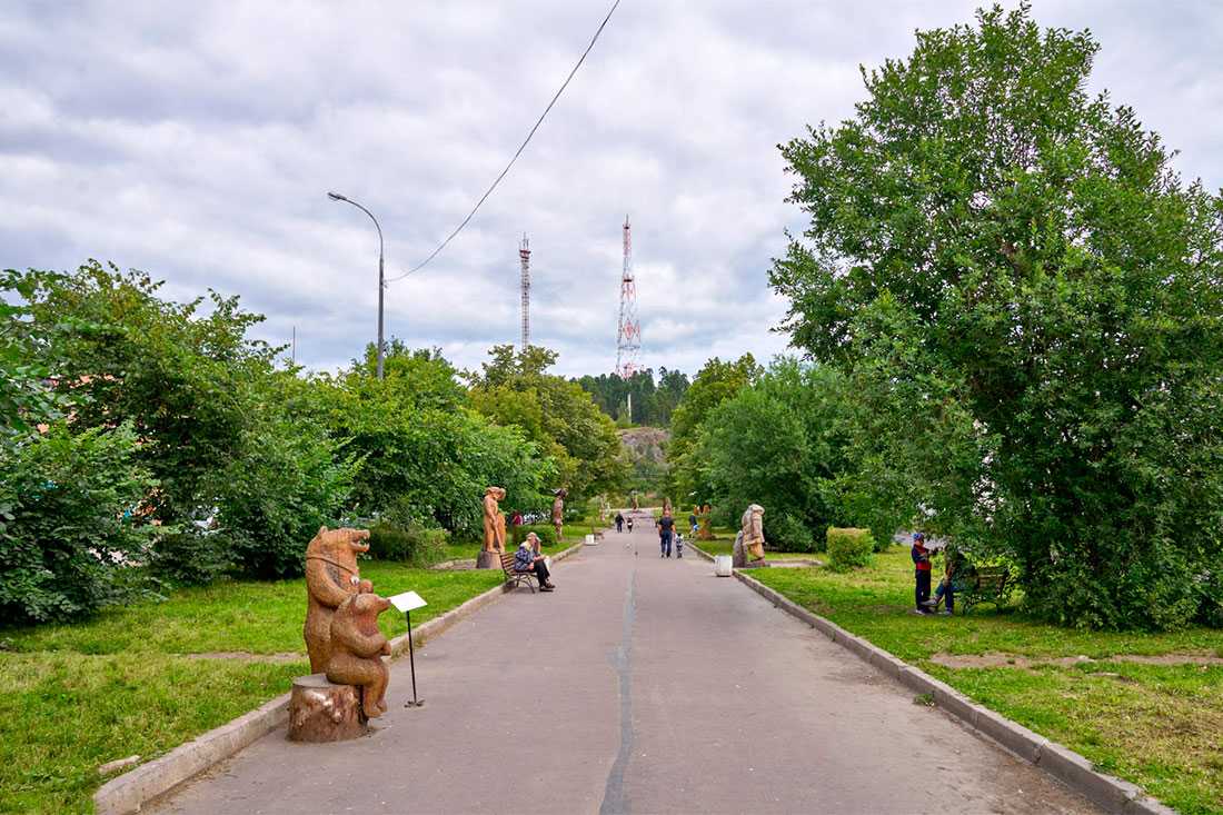 - Центральная, идущая вдоль главного проспекта, обустроена в регулярном стиле: с лавочками, дорожками и клумбами.