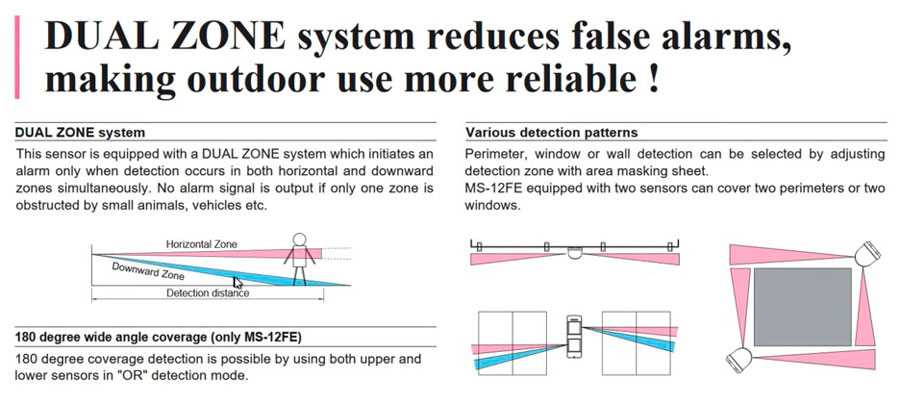 Это необходимо учитывать для того, чтобы избежать мертвых зон. Например, для контроля коридора или двери, прибор необходимо устанавливать так, чтобы его лицевая часть была направлена поперек прохода.