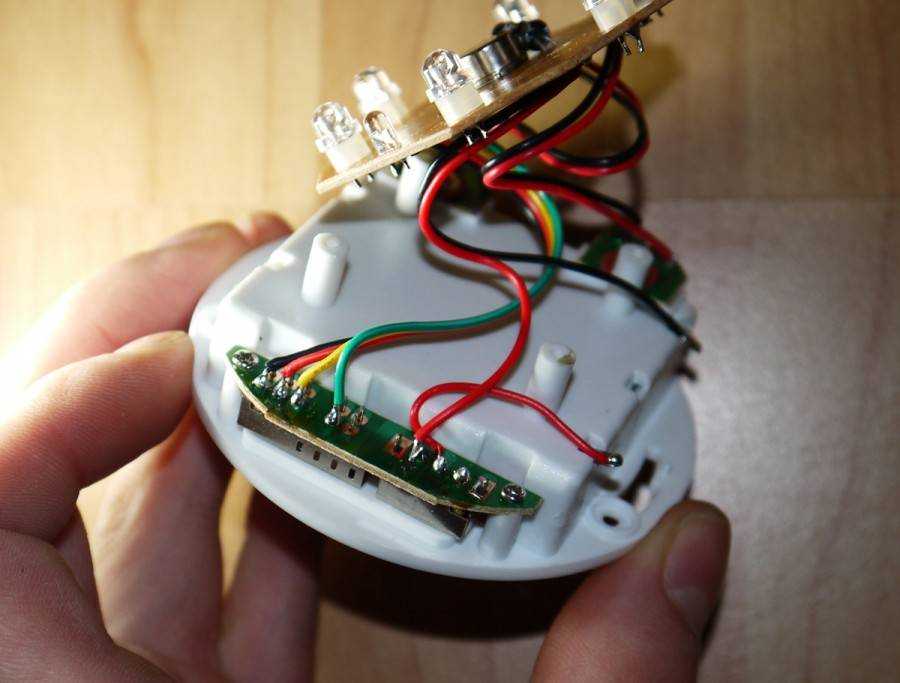 Под крышкой датчика имеется колодка для подключения, к ней подсоединены три цветных контакта, выходящих из корпуса
