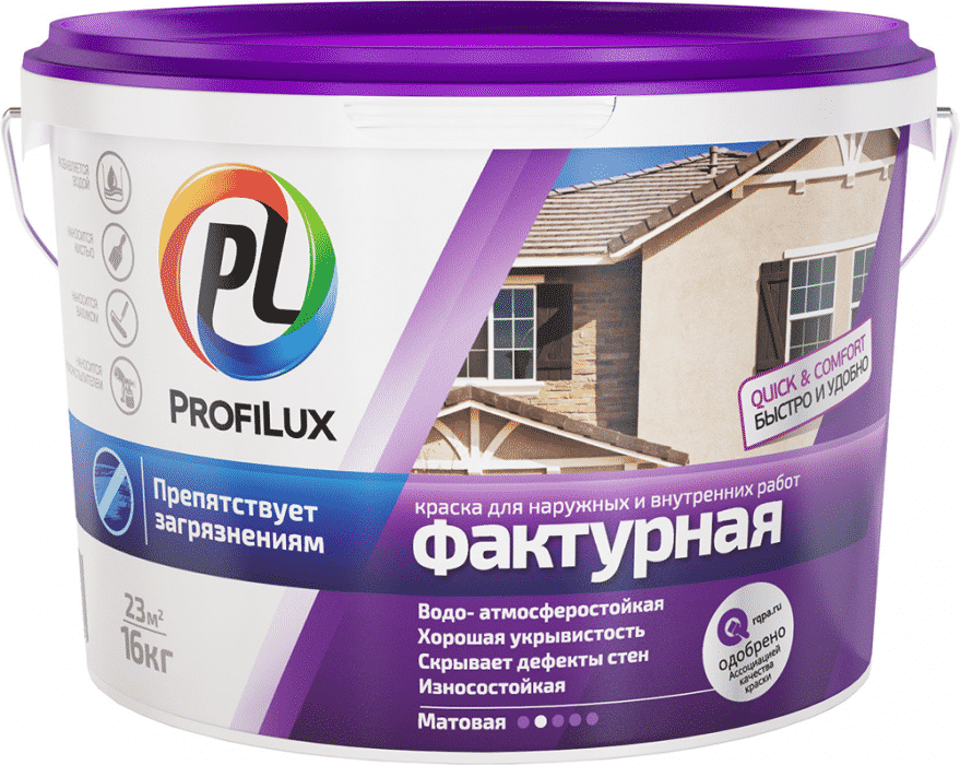 Фактурные краски часто применяют для отделки наружных поверхностей, при выборе следует обращать внимание на рекомендации изготовителя на упаковке. Они должны обладать: