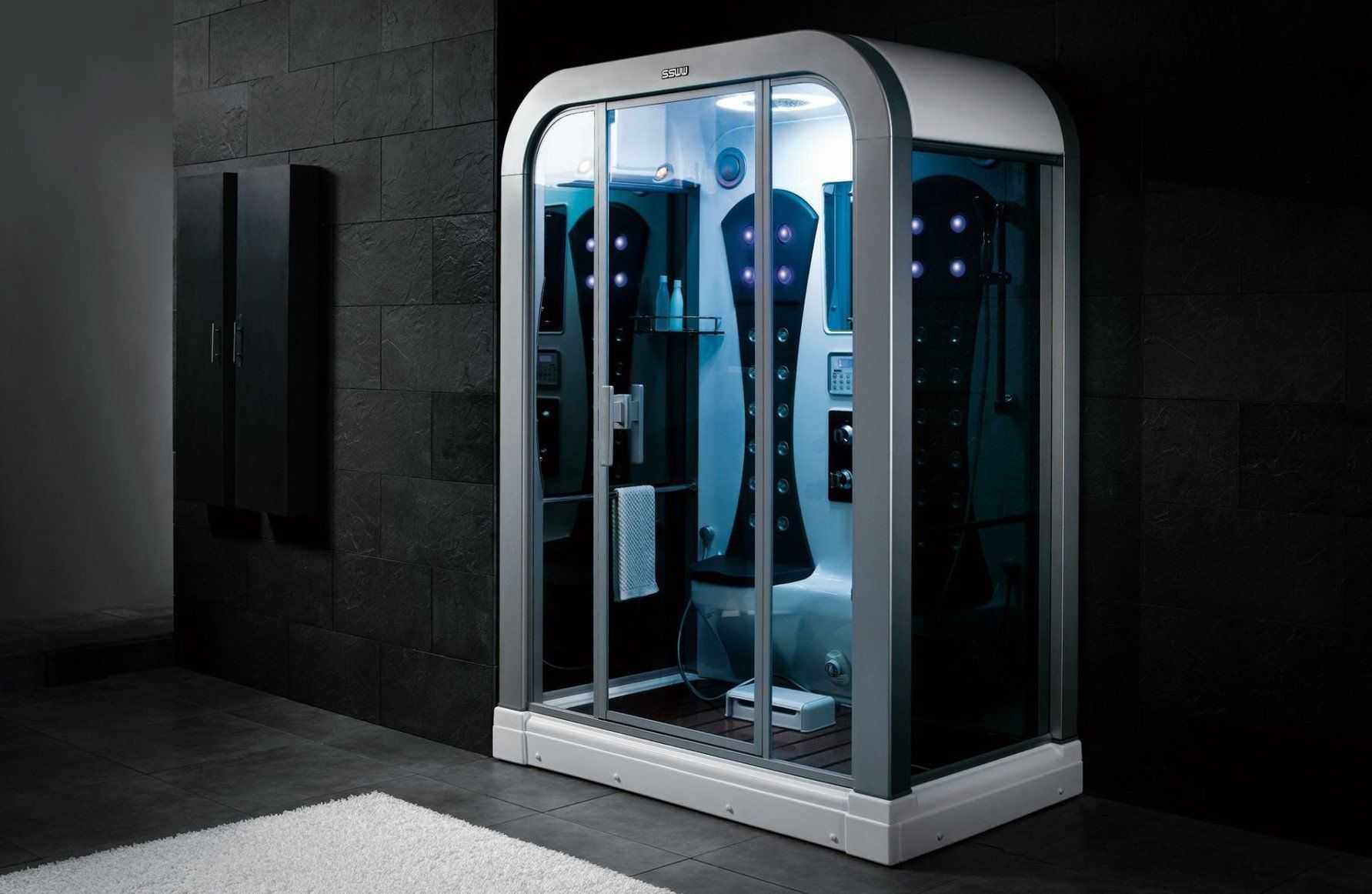 Это замкнутая капсула, которая устанавливается отдельно от стенок помещения. Она оснащена собственными крышей, полом и стенками. В таком виде кабинок часто производители внедряют различные дополнительные функции и навороты.