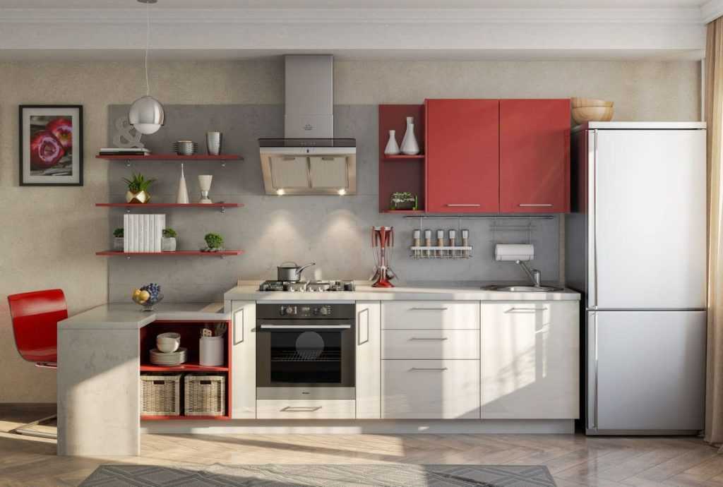 Кухня идеально впишется в узкое и малогабаритное помещение от 6 до 12 м2, ширина которого менее 2 м. В таком варианте предусматривают выдвижную систему для посуды, навесные шкафы – для продуктов. Чтобы не загружать пространство, покупают встраиваемую технику, между холодильником, мойкой и плитой располагают рабочие столы, на противоположной стороне размещают складной или пристенный, откидной стол.