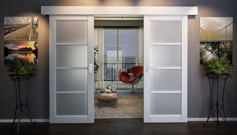 Выполняются в одностворчатом, двустворчатом и многостворчатом исполнении. Двери-купе имеют накладной принцип крепления направляющих, в кассетных дверях направляющие интегрируются внутрь стены, а полотна сдвигаются в специальные ниши, которые изготавливаются из гипсокартона или приобретаются вместе с дверной конструкцией. Многостворчатые каскадные двери движутся по нескольким параллельным друг другу направляющим, собираясь «в стопку» с определенной стороны проема поверх стены.