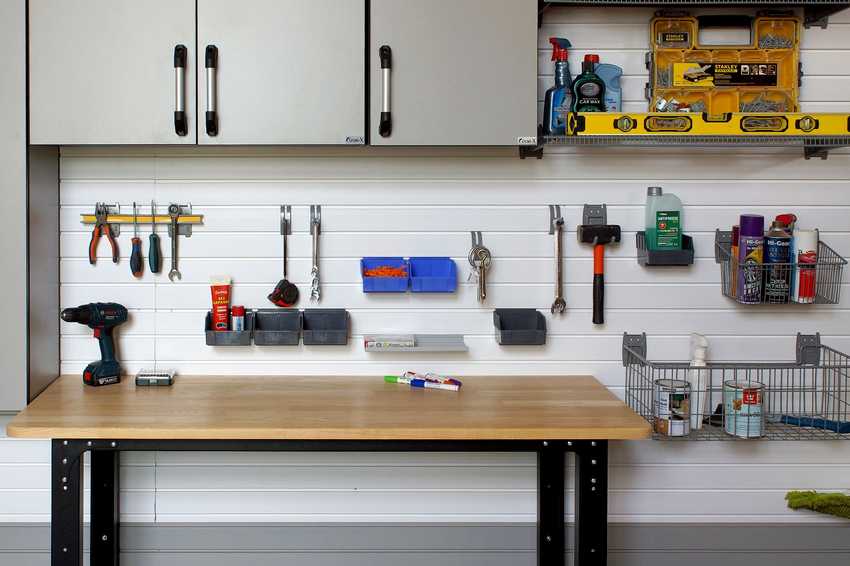Верстак и само оборудование требуется размещать так, чтобы в процессе работы не требовалось выгонять машину из гаража. При этом конструкция не должна препятствовать свободному въезду автомобиля или блокировать дверь.