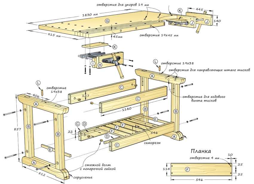 Создание деревянного верстака в гараже своими руками: чертежи и технология