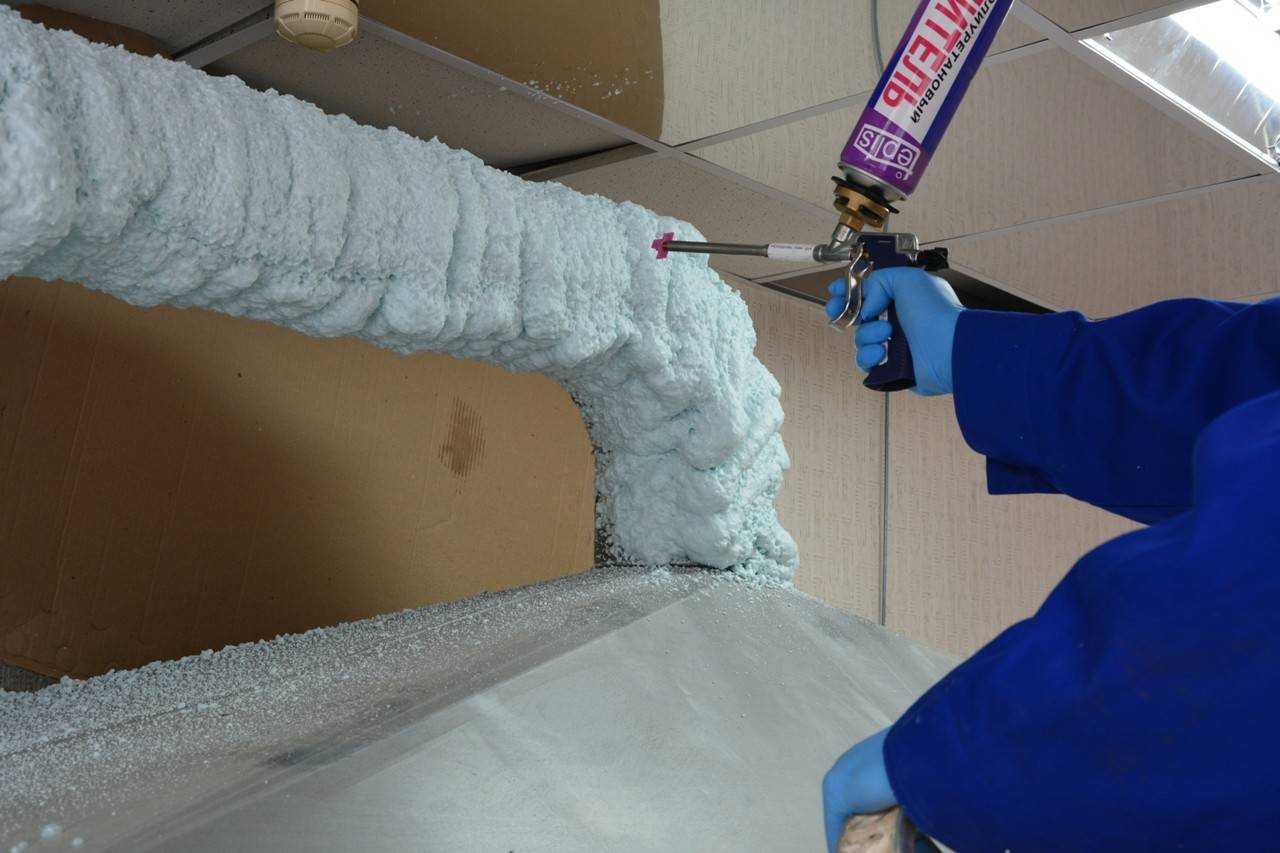 Как можно понять из названия, это процесс распределения монтажной пены по поверхности при помощи распылителя.