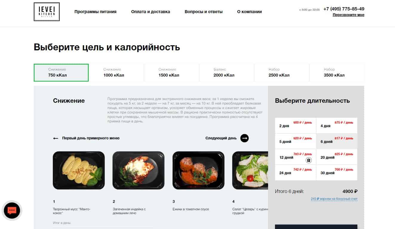Компания Level Kitchen входит в топ сервисов на российском рынке по продаже готовой еды. Меню насчитывает свыше 300 полезных блюд, соответствующих правилам ПП. При готовке повара отдают предпочтение щадящим способам: запеканию, тушению, паровой обработке.
