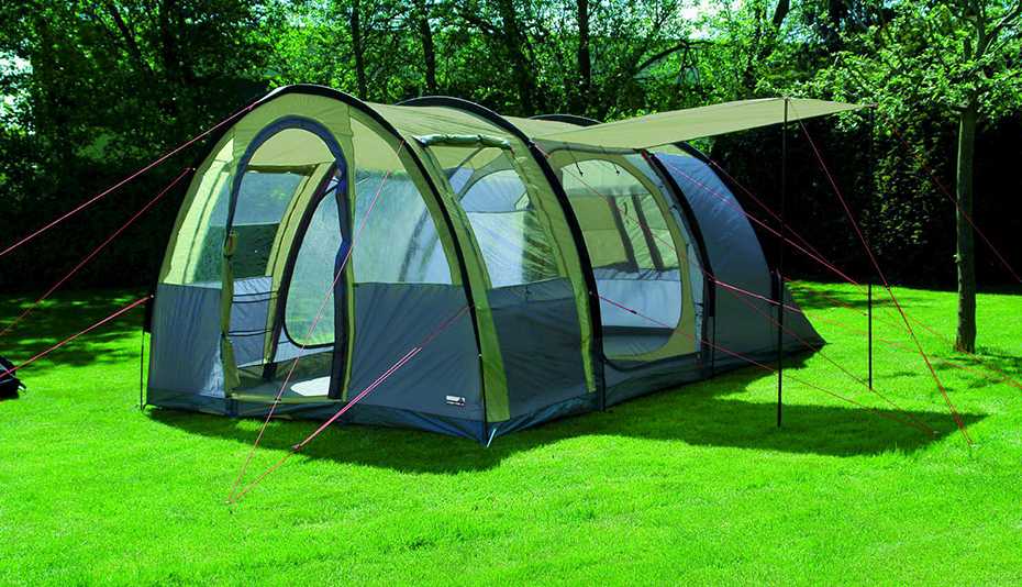 Хорошая палатка для семейного отдыха и для больших компаний — производитель утверждает, что в ней поместятся 6 человек, если как минимум двое — дети. Летние палатки не отличаются высокой водонепронецаемостью, так что этот вариант хорош только для отдыха в сухую погоду, защитит от легкого дождя, но долгий ливень не выдержит — хотя спальное место наверняка останется сухим, тамбур точно промокнет. Весит палатка 10кг в упакованном виде, хорошо защищает от жары — вентиляция гораздо лучше, чем во многих похожих моделях за ту же цену. Кстати, о цене — если вы остановили свой взгляд именно на этой модели, будет разумно прошерстить каталоги, так как цена на нее в разных магазинах может существенно различаться. В подвесном отсеке трем взрослым может оказаться тесно — нависающая стенка будет упираться в лицо.