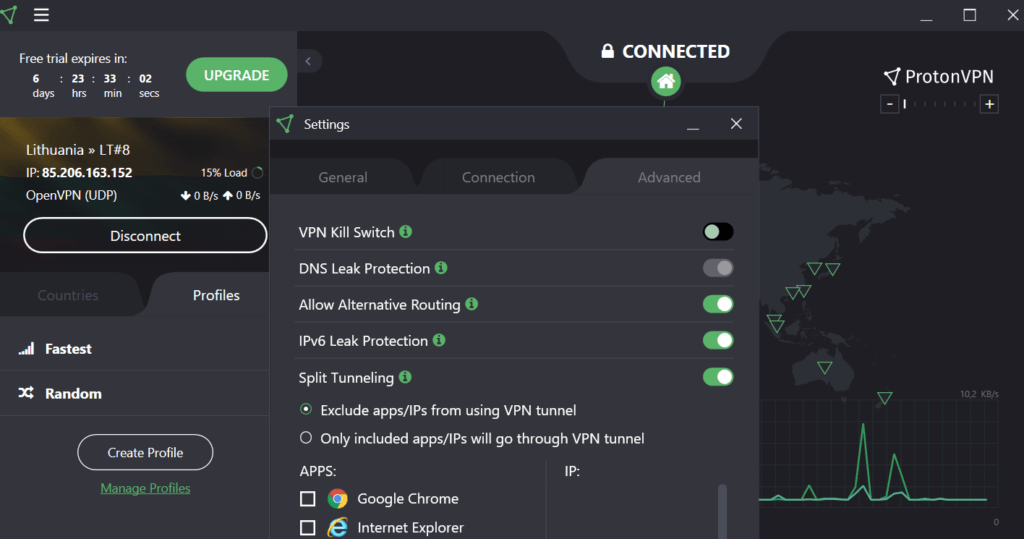 - Нет возможности включить работу VPN только для определенных приложений, или сайтов.