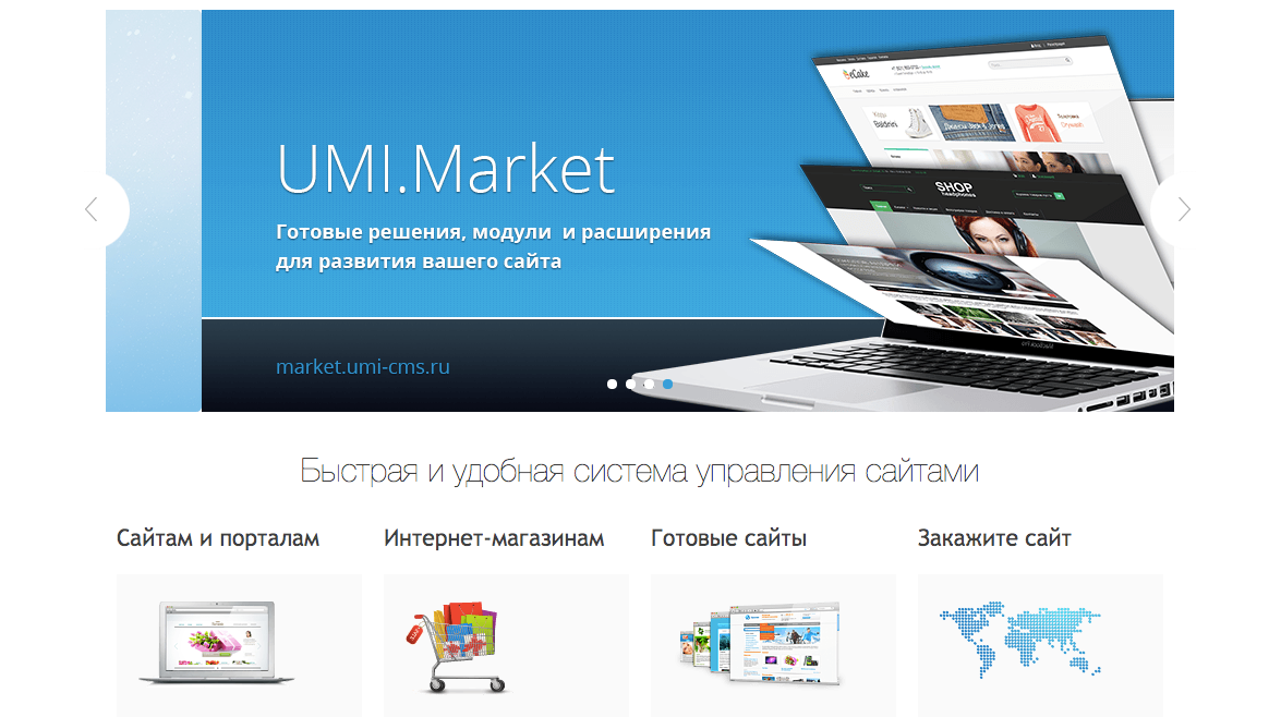 Возможность доработки под себя. UMI.CMS — универсальный движок для сайтов с открытым исходным кодом. Его универсальность может сыграть против вас — возможно вы переплатите за ненужные для электронной коммерции функции, а некоторых действительно полезных фич не окажется в стандартной поставке. Придется докупать модули, покупать более дорогую редакцию или дорабатывать самостоятельно. Благо у движка открытый исходный код, и по заявлению компании, по всему миру более 2 500 разработчиков работают с UMI.CMS.