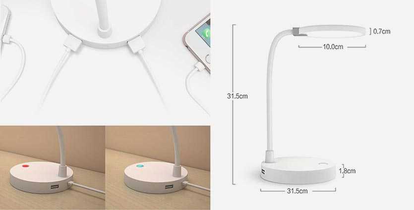 Сенсорное управление. Возможность выбора цветовой температуры: теплой (3000 К), нейтральной (4200 К), холодной (6300). Каждый из режимов регулируется отдельно. Гибкая ножка позволяет направить свет в необходимое место на столе. Рабочую лампу можно вращать, поворачивать, складывать. Очень надежное крепление к поверхности: прорезиненные ножки и кронштейн. Энергоэффективна: потребляемая мощность 9 Вт. Производитель заявляет длительный срок службы: 30000 часов.