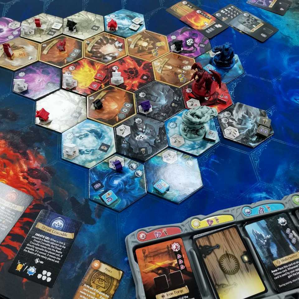 За календарный год про игру писали и говорили только в восторженных тонах. А из недостатков упоминали лишь две вещи: некоторый оверпрайс и слишком рандомную боёвку. И с тем, и с другим можно согласиться. Но дьявол, как говорится, в деталях. База стоит 100 долларов, и её контент составляет 90% от всей игры. Да, вместо деревянных ресурсов картонные плашки, вместо пластиковых миничек картонные стенды, нет пары секторов поля, дающих новые действия. Но геймплейно ничего не меняется, абсолютно. Более дорогие Deluxe и Legendary издания добавляют дерево и пластик, 3 новых тайла и увеличивают количество монстров до 16. Ах да, и ещё вопящие подставки для последних.