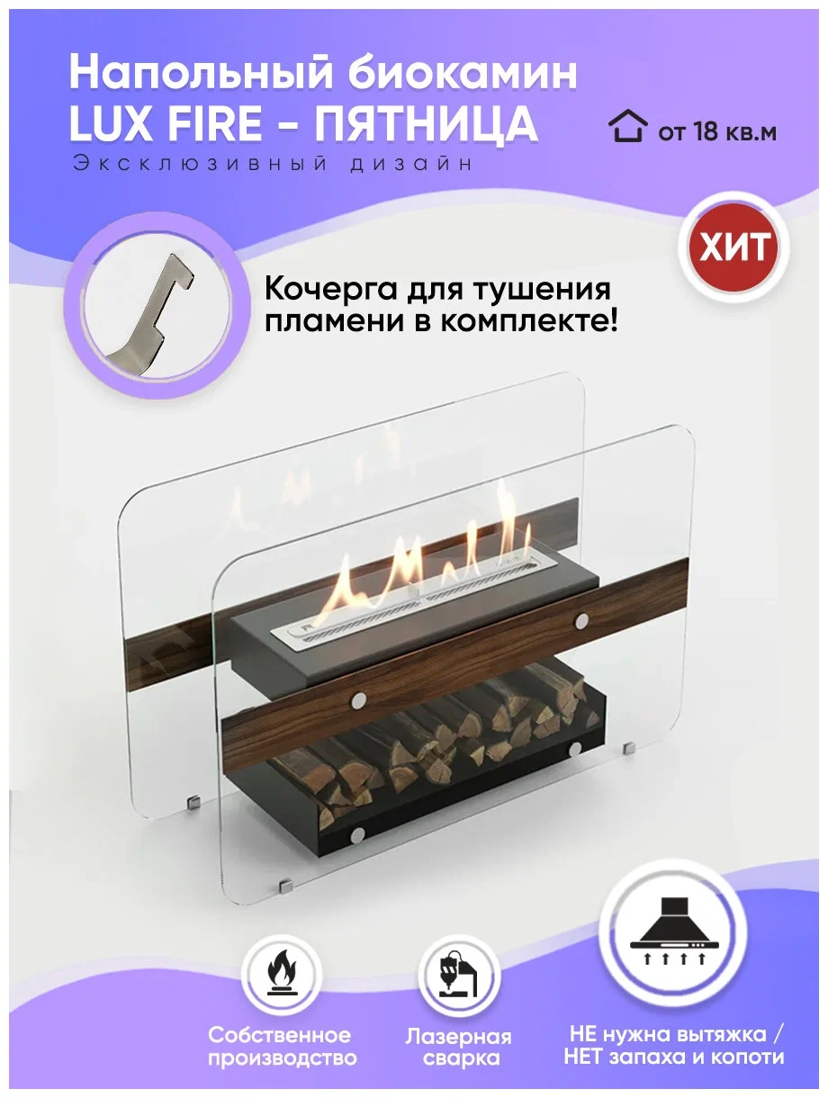 Устройство может поддерживать горение до 3 часов. Биокамин не требует предустановленного дымохода для безопасной работы. При отдельной докупке пьезозажигалки будет доступен безопасный поджиг. Топливо расходуется экономично. По эстетике и дизайну модель не уступает настоящим каминам, поэтому подойдет в большинство помещений вне зависимости от их назначения. Стоит помнить о необходимости проветривания после использования биокамина.