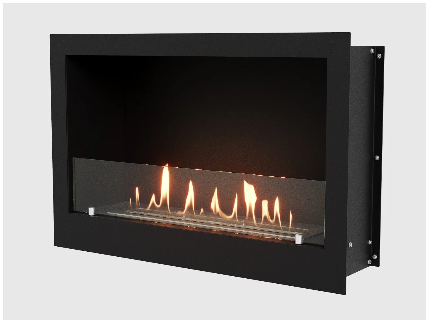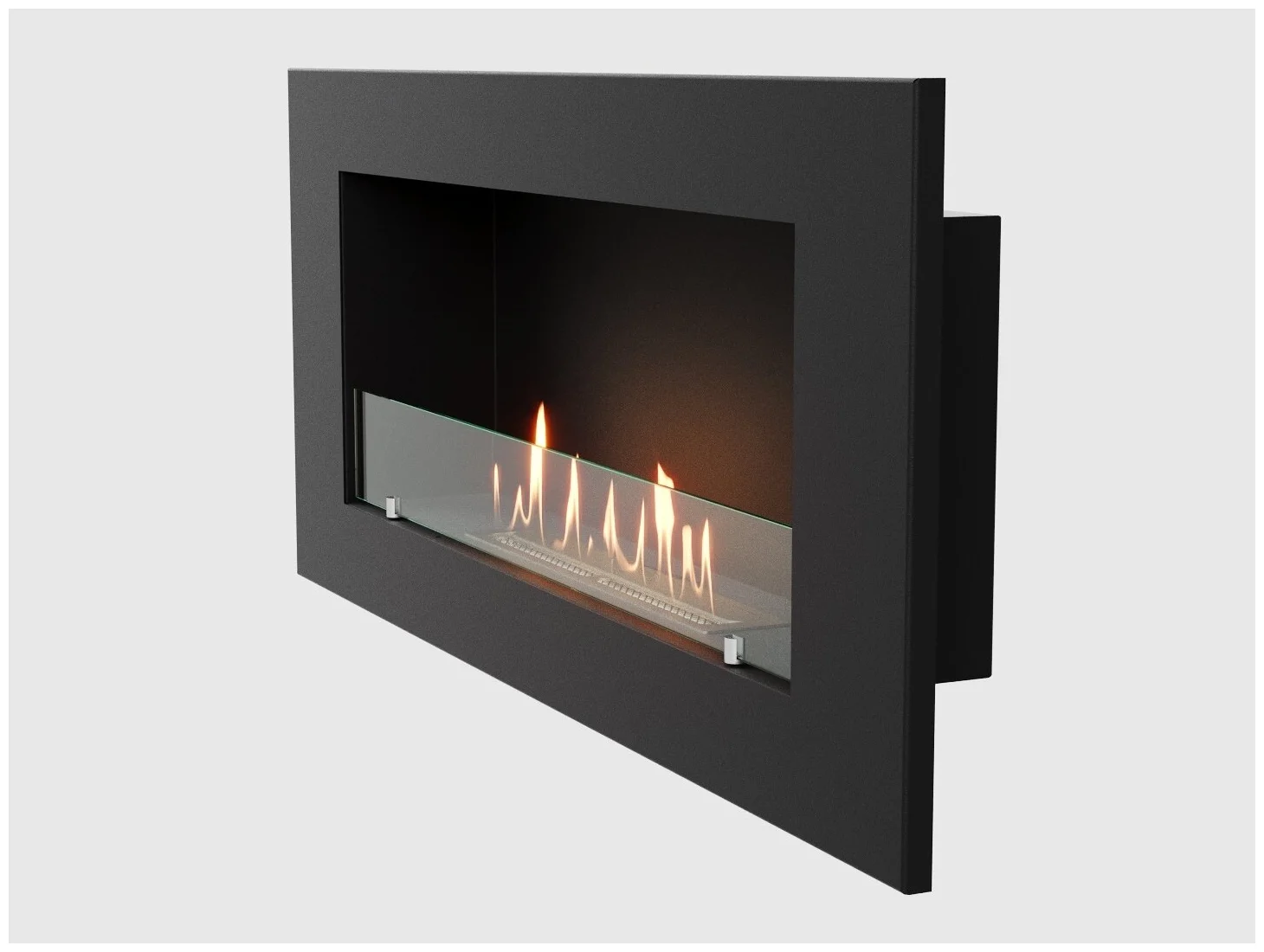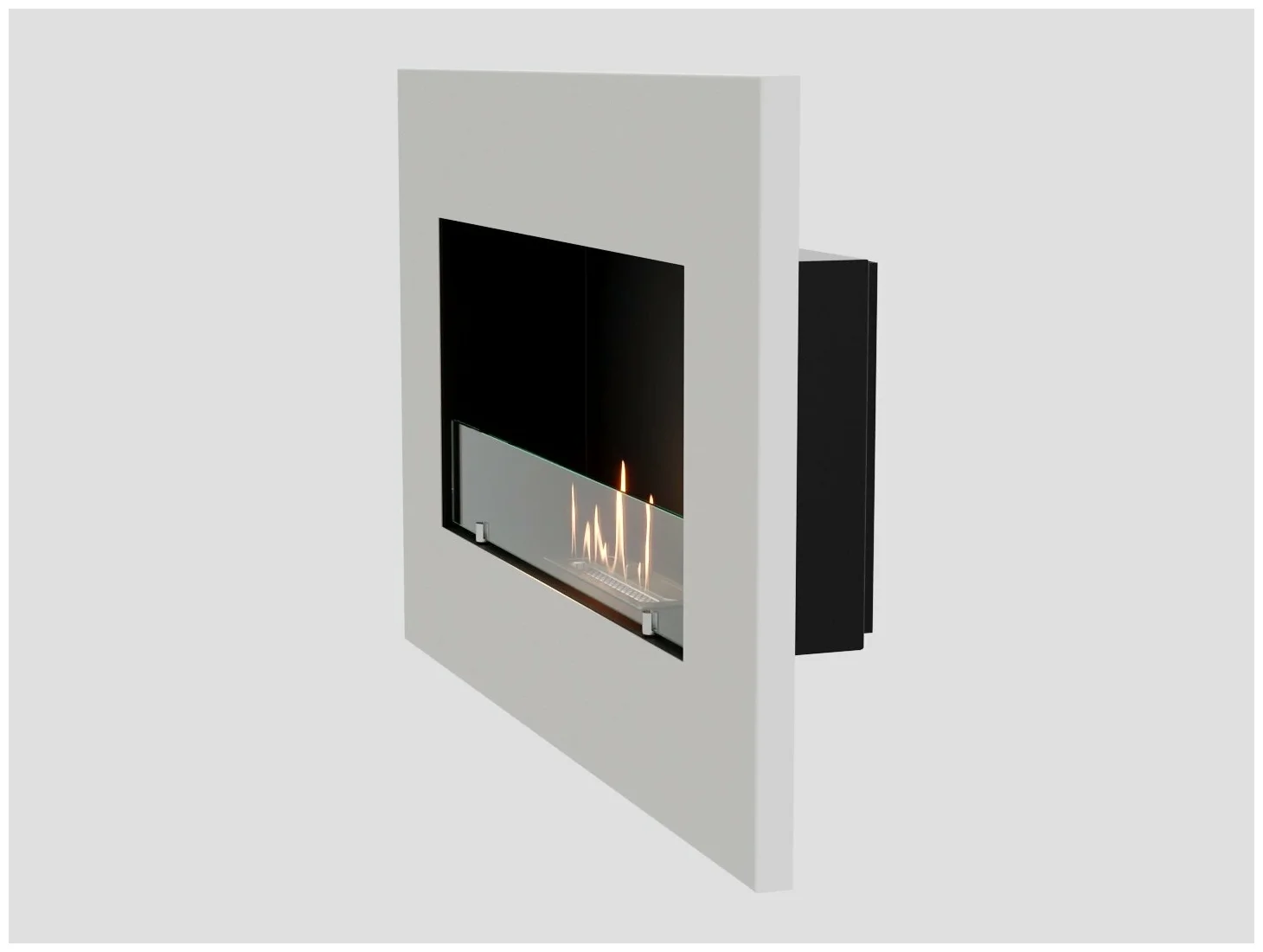 - Конструкция настенного биокамина позволяет закрепить его на стене. Один из вариантов настенного биокамина – это неглубокий короб со стеклянной передней панелью. Второй вариант – биокамин с открытым верхом. Неудобство второй конструкции в том, что над ней необходимо оставить свободное пространство без воспламеняющихся поверхностей, например, книжных полок.