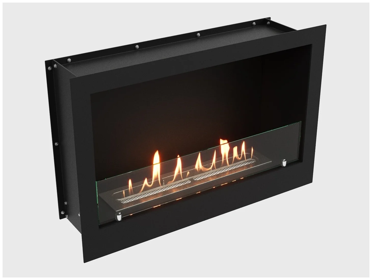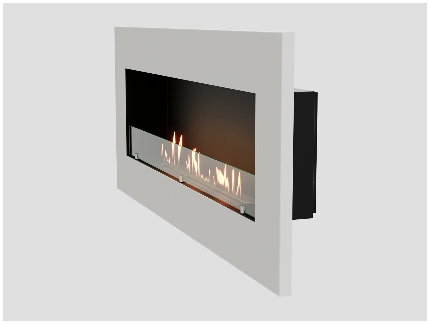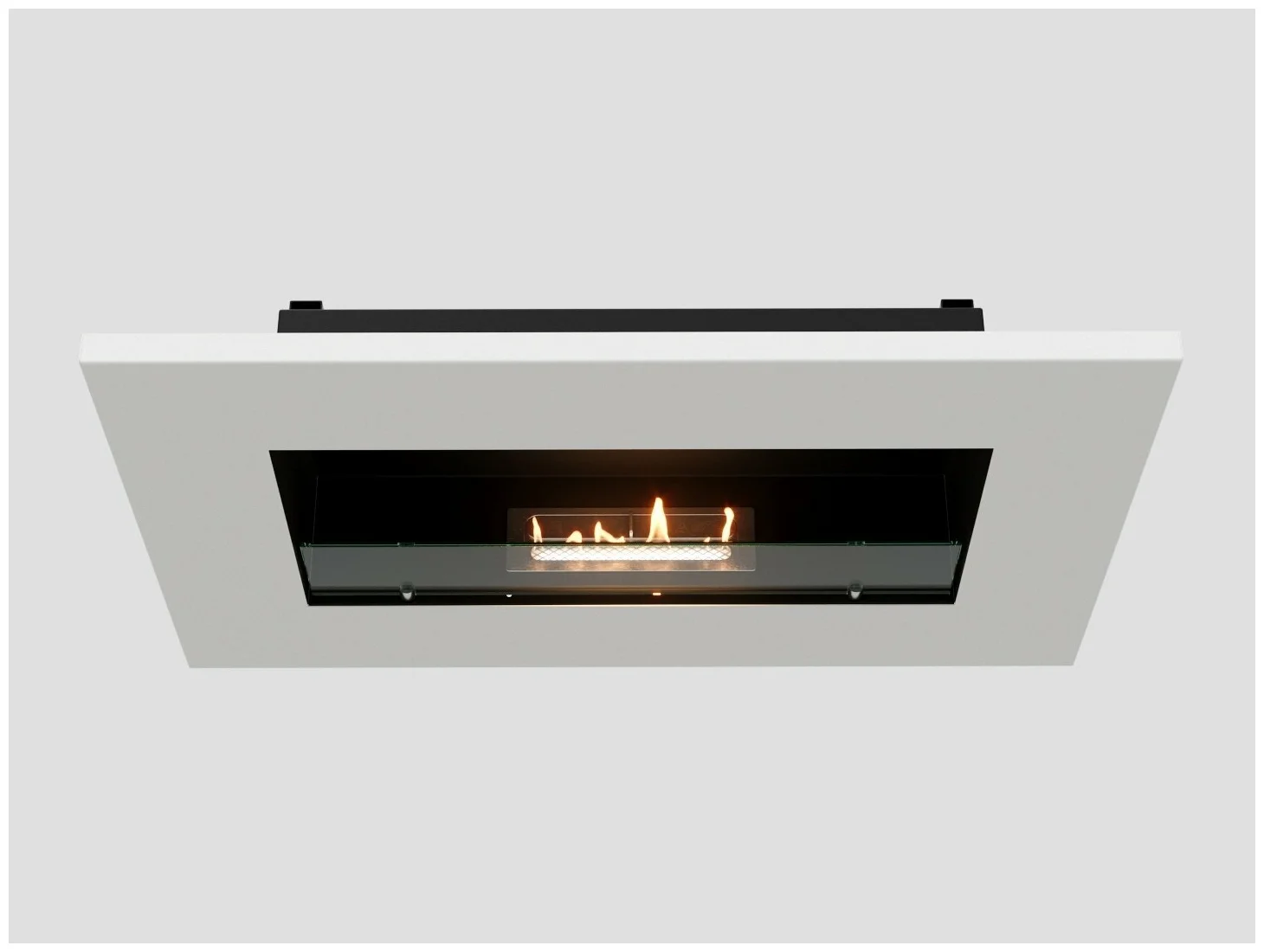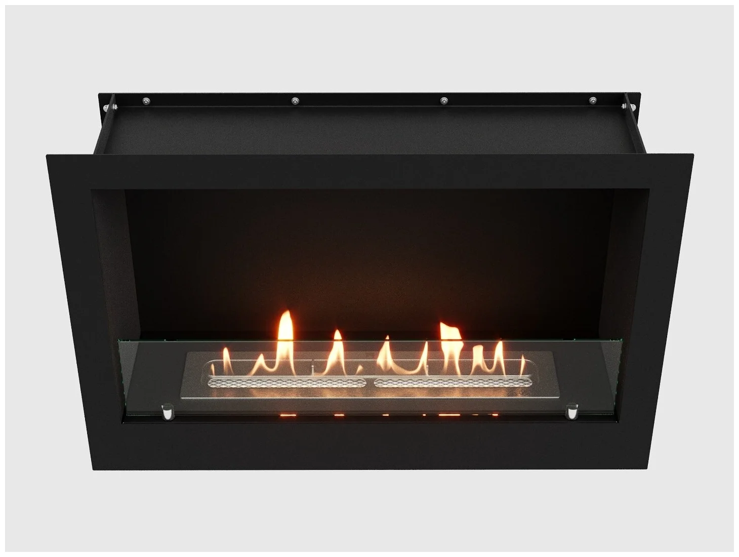 - Конструкция настенного биокамина позволяет закрепить его на стене. Один из вариантов настенного биокамина – это неглубокий короб со стеклянной передней панелью. Второй вариант – биокамин с открытым верхом. Неудобство второй конструкции в том, что над ней необходимо оставить свободное пространство без воспламеняющихся поверхностей, например, книжных полок.