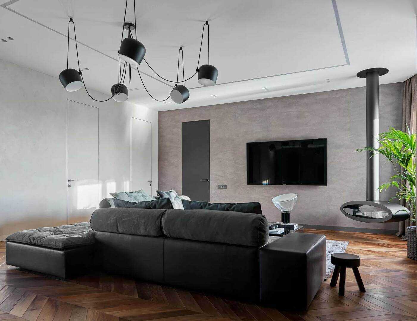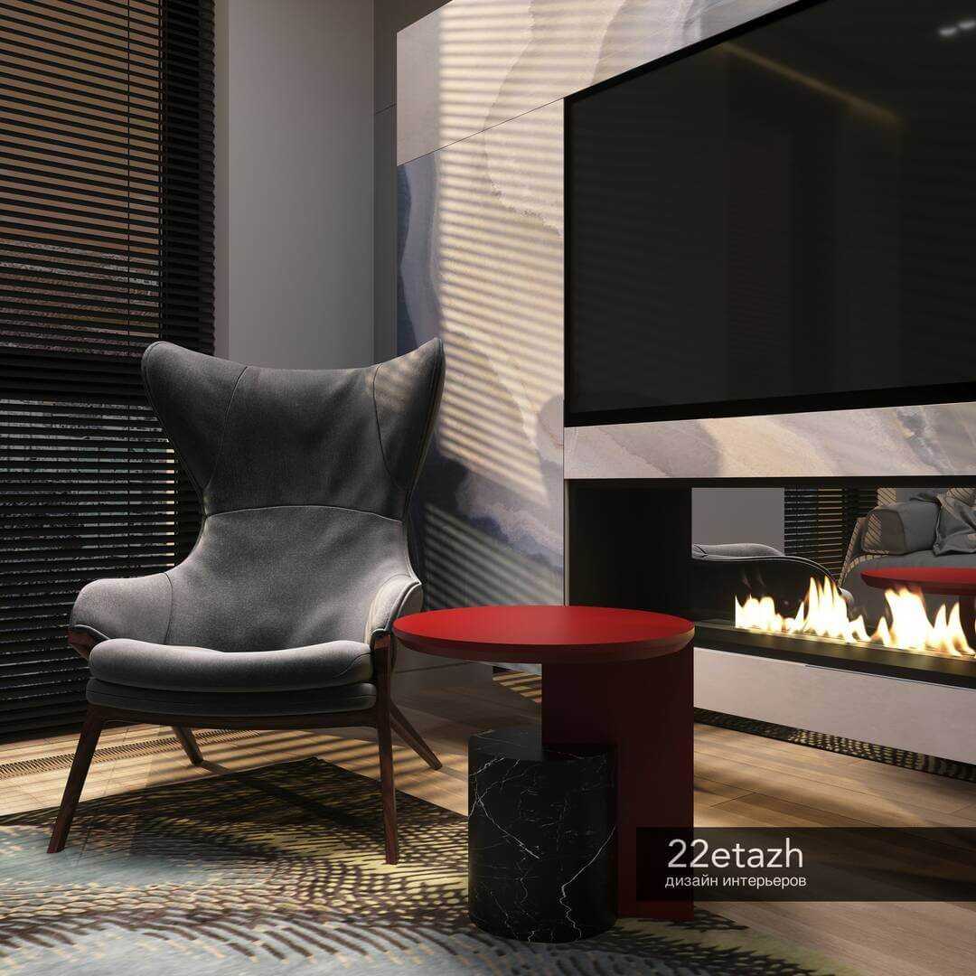 Подвесной камин с дымоходом. Проект квартиры в новом доме в Петербурге, дизайн-бюро PM Design