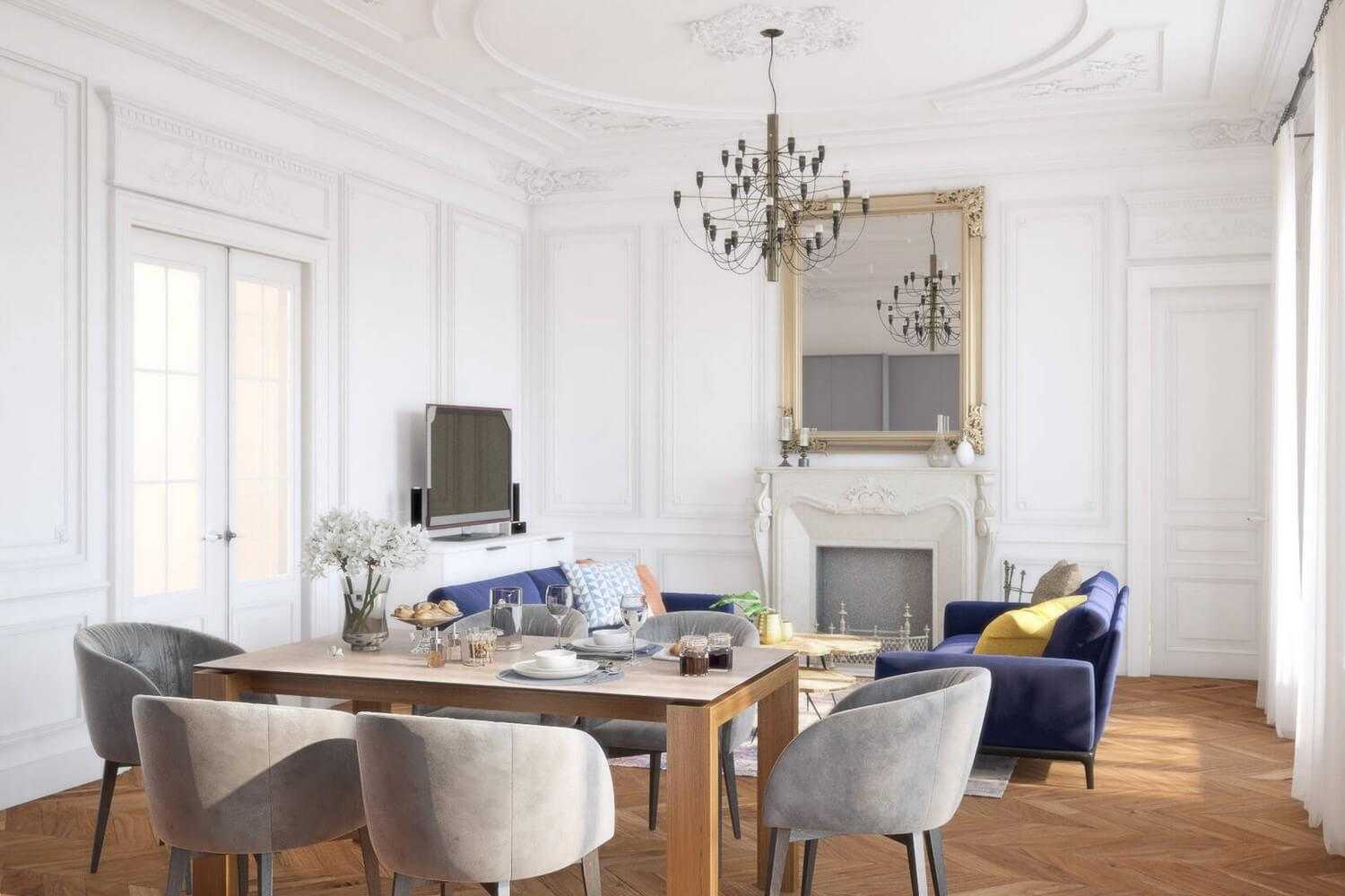 Декоративный камин с защитной решеткой и каминными аксессуарами. Квартира в классическом парижском стиле, дизайнер Екатерина Данилова