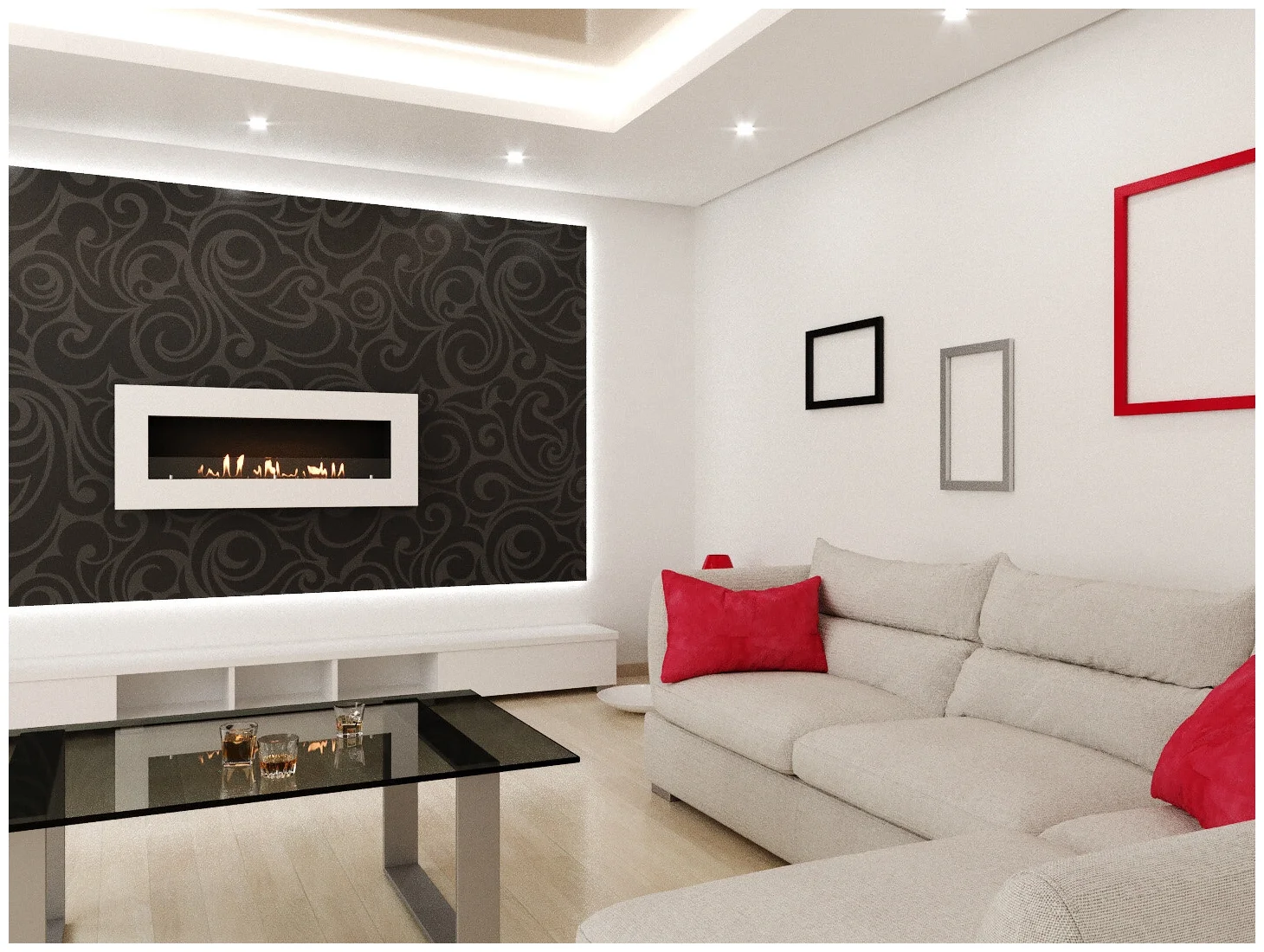 Большим преимуществом биокамина можно считать возможность задействовать пространство над камином, например установка над ним телевизора. Такой способ оформления безопасен и смотрится эффектно.