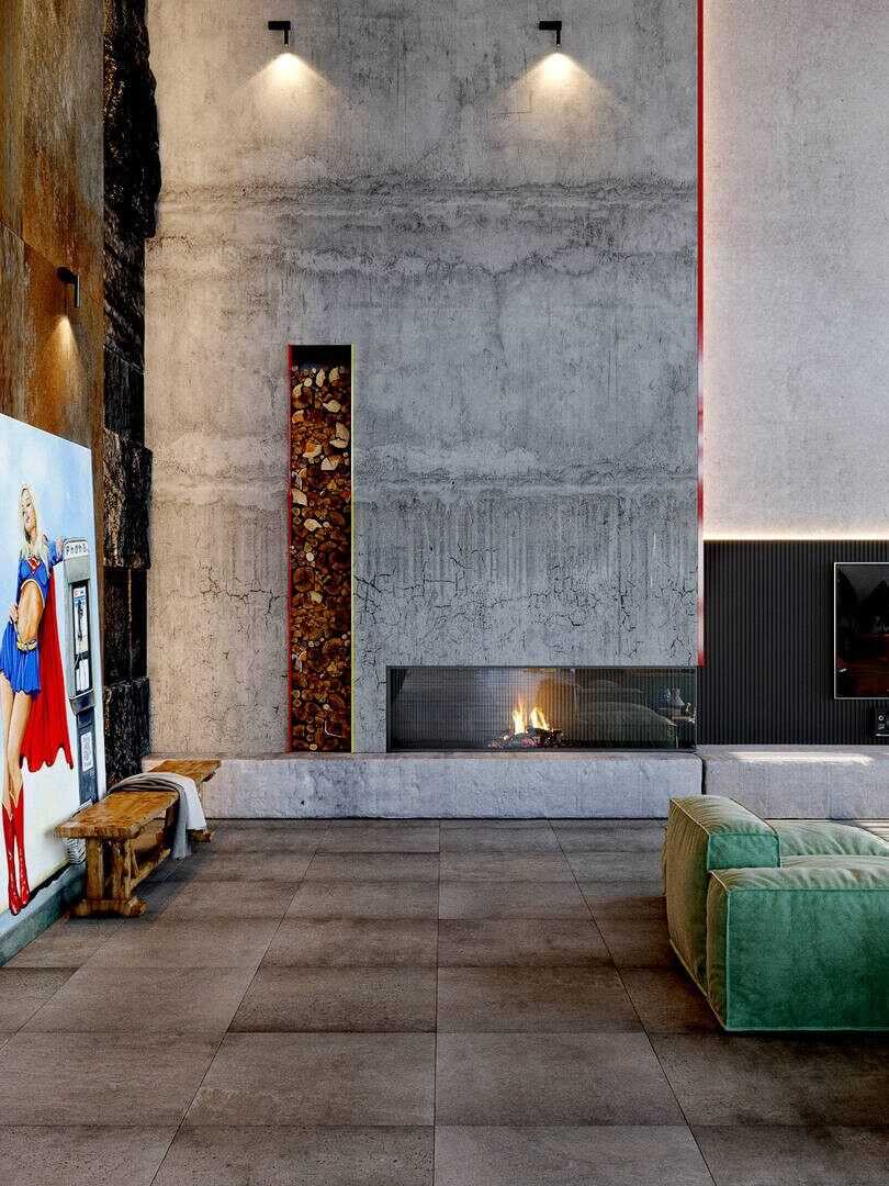 Дровница для камина может стать оригинальным акцентом интерьера. Пентхаус Нью-Йорке, дизайнер Павел Алексеев