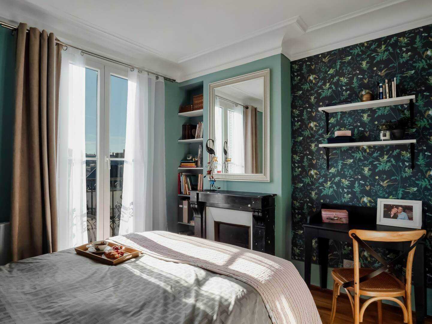 Каминный портал в спальне с зеркалом. Проект «Цветы и птицы», дизайнер Екатерина Данилова