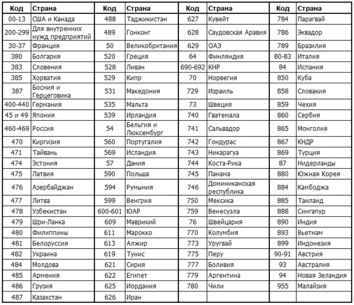 Важно: вот так выглядят штрих-коды самых крупных стран-производителей: Испания — 84, Италия — 80-83, Германия — 400-440, Франция — 30-37, США и Канада — 00-09, Британия — 50. Кстати, если на упаковке указано, например, «Made in France», это может говорить о подлинности