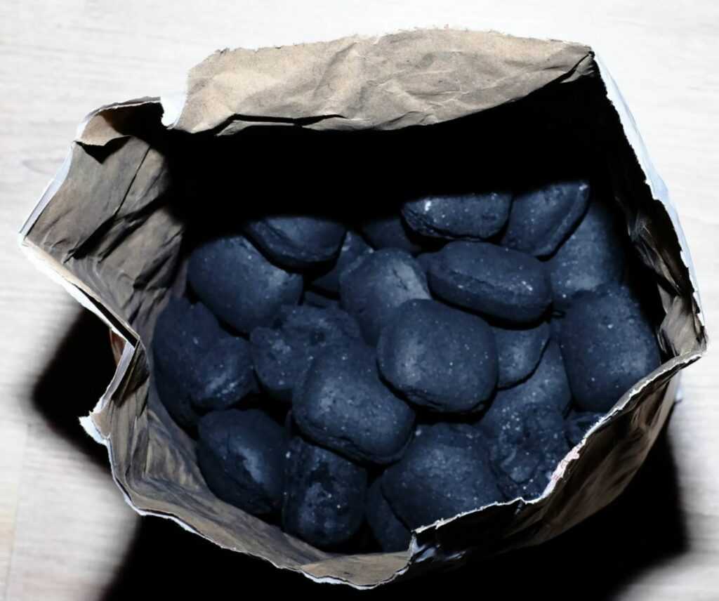 Сейчас в продаже можно встретить угольные брикеты. Брикеты — это прессованный уголь, в который добавляют дополнительные компоненты для связки, например, крахмал.