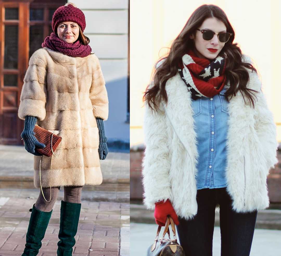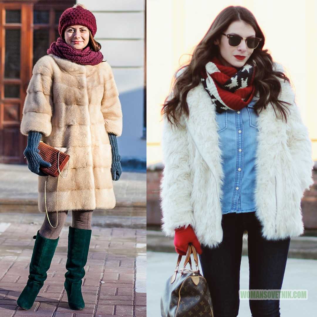 Шикарный натуральный мех шубы, отлично выделит шарф, выполненный из кашемира, набитого шелка или связанного из пуха ангорской козы. Цвета шубы и снуда не должны конфликтовать друг с другом, поэтому для лаконичного завершения образа цвет аксессуара должен быть мягкого, спокойного цвета.
