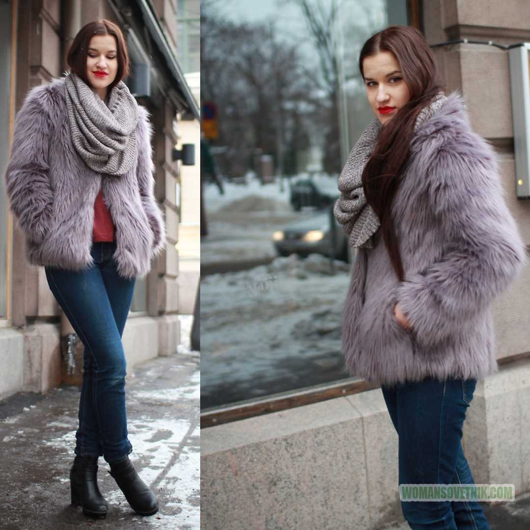 Со стеганной курткой и пуховиком лучше всего смотрятся меховые снуды. Капюшон куртки в таком случае стоит отстегнуть, чтобы он не мешал носить шарф, тем более что мороз вам будет не страшен – меховой аксессуар может заменить шапку и сохранить голову в тепле.