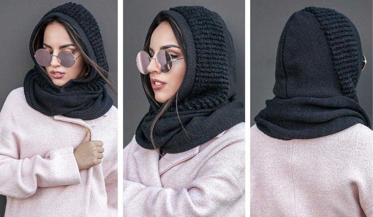 Весенне-осенние и зимние варианты – это вязаные хомуты. Теплота будет зависеть от толщины, плотности вязки и пряжи. Вязаный хомут – это теплый и яркий акцент в созданном образе. К примеру, сочные цвета и крупная вязка хорошо сочетаются с легкими свитерами без воротников и трикотажными водолазками. Неповторимый образ создают, сочетая объемные вязаные хомуты с пуховиками–одеялами и куртками оверсайз. Важным моментом, подчеркивающим необычность образа, является отсутствие капюшона. Вязаный хомут способен полностью изменить образ