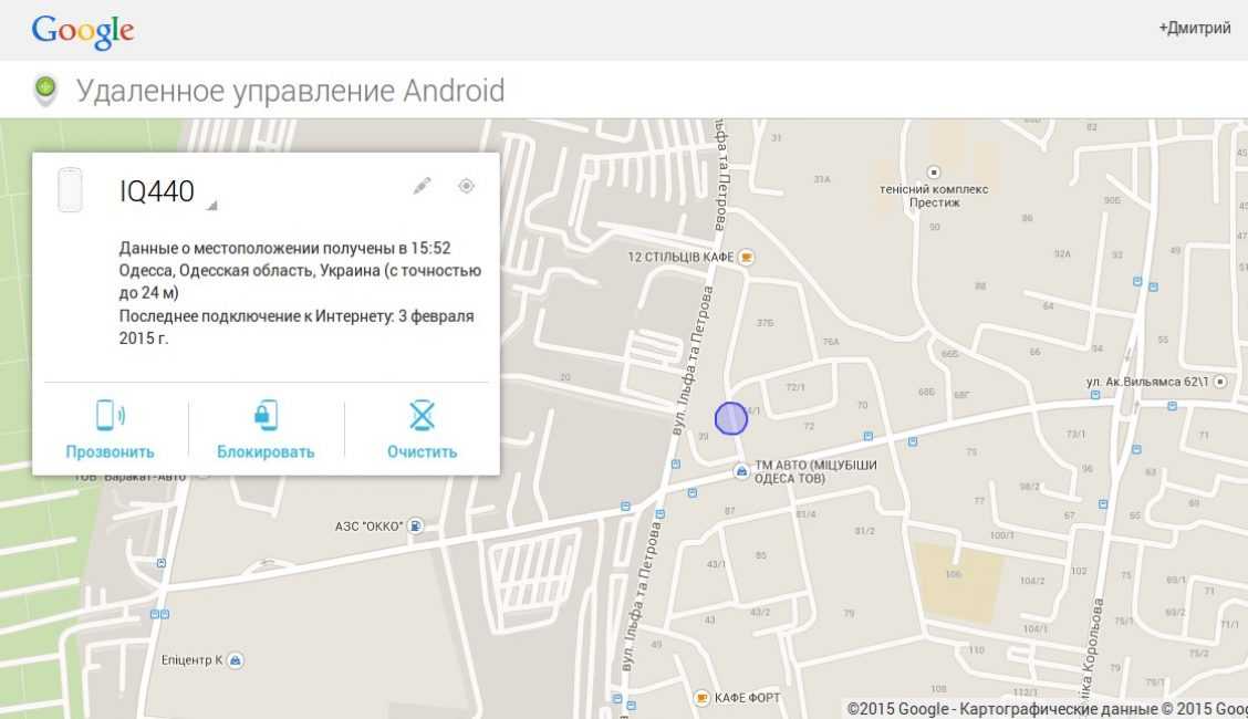 После этого откроется меню с картой, где будет видно местоположение вашего смартфона.