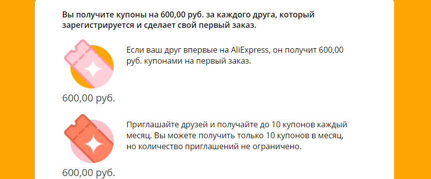 - Купон приведи друга — за каждого приглашённого друга вы получаете купон на 600₽, а ваш друг получить на 600₽.