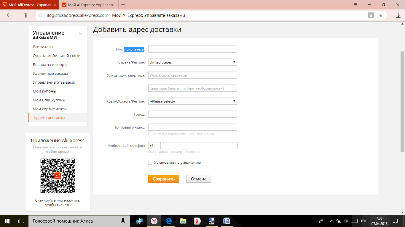 Для этого нажмите на кнопку Добавить новый адрес и введите всю необходимую информацию латиницей и очень внимательно, так как в противном случае вы не получите свою покупку;
