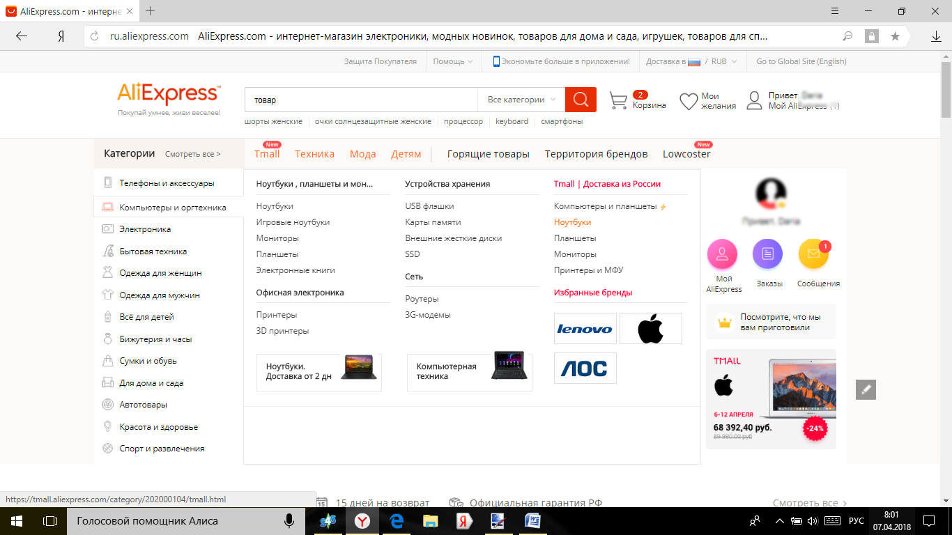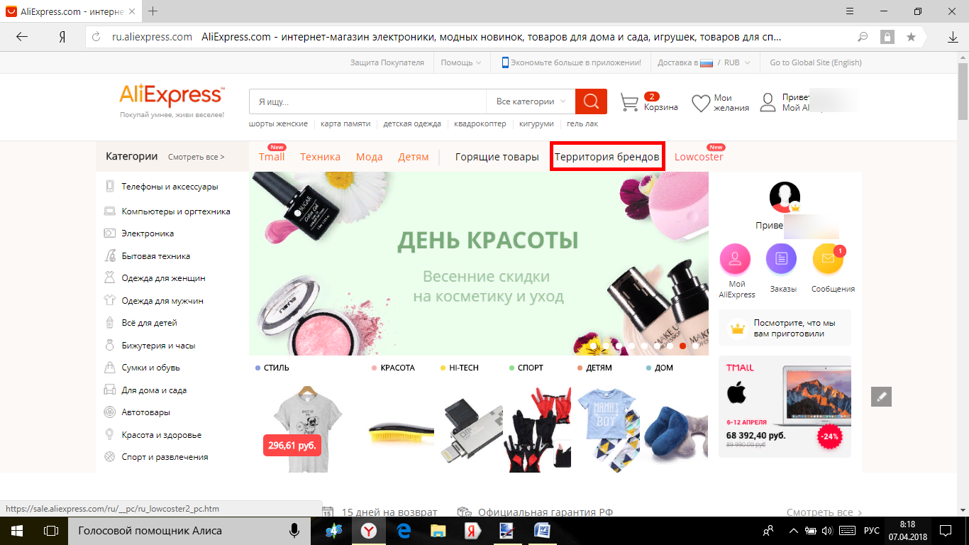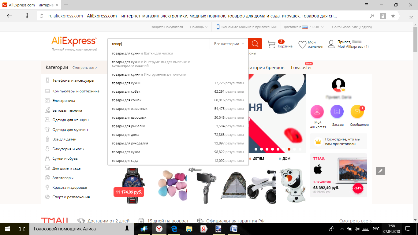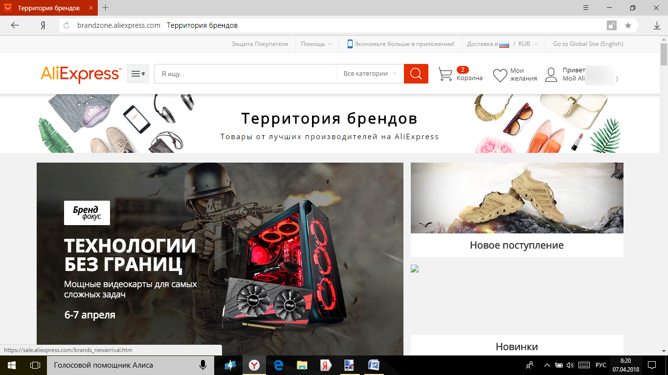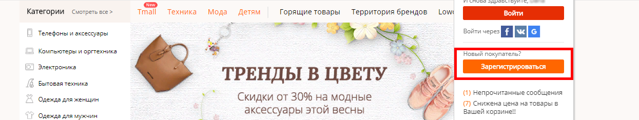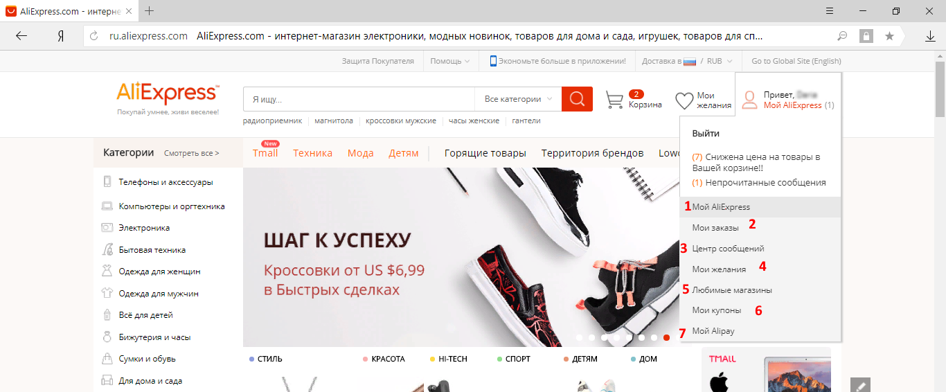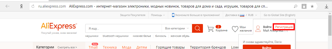 - Перейдите на сайт https://ru.aliexpress.com/ — русскоязычное ответвление главного сайта;