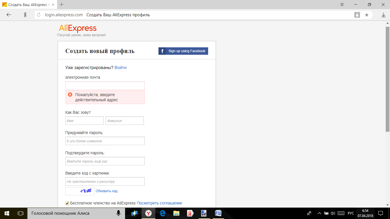 - Если сделаете так, то на этом ваша регистрация окончена, но если вы хотите зарегистрировать учетную запись Алиэкспресс отдельно, то действуйте дальше, согласно алгоритму;