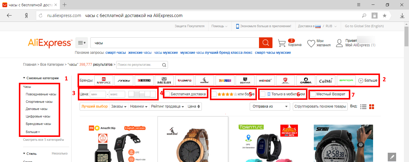 - Если вы установите галочку в чекбокс рядом с надписью Только в мобильном, то среди результатов останутся только те, что доступны по спецпредложениям в мобильном приложении Алиэкспресс;