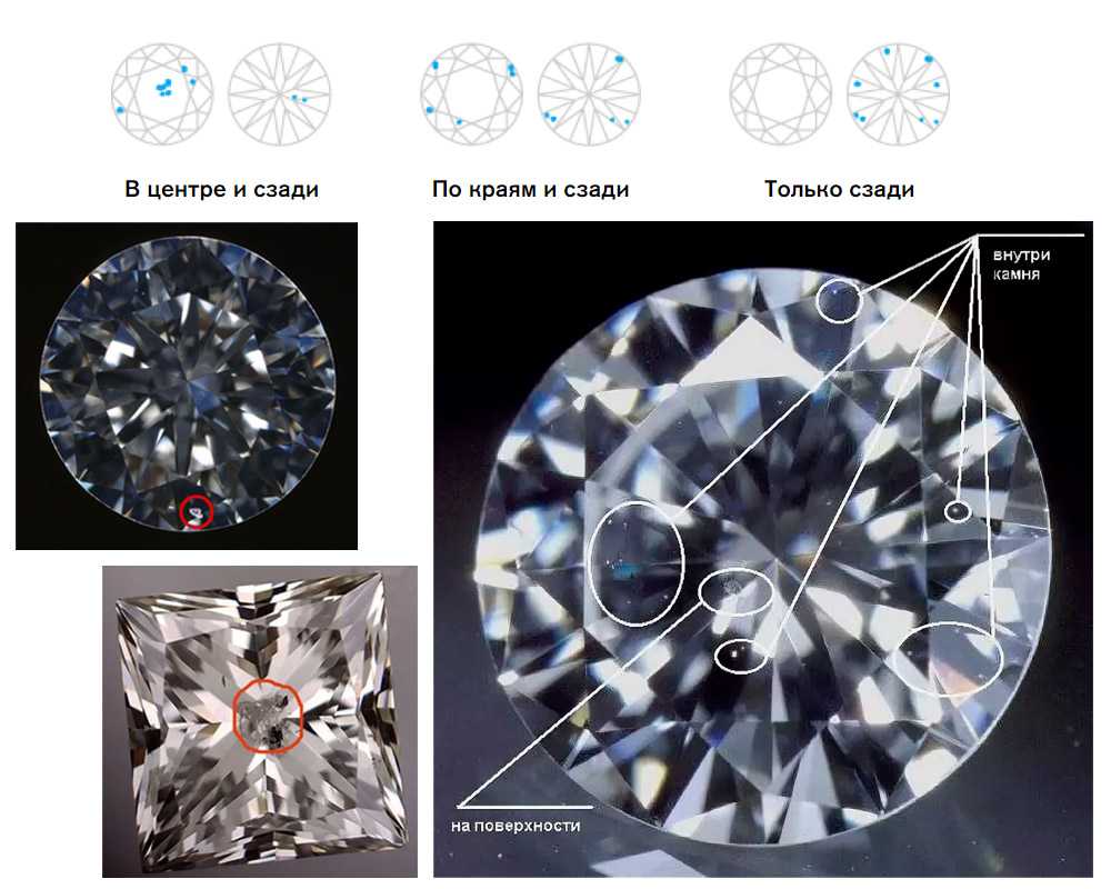 Размер и расположение включений существенно меняют цену бриллианта. Крайне редко встречаются безупречно чистые бриллианты, поэтому цена их необычайно высока.