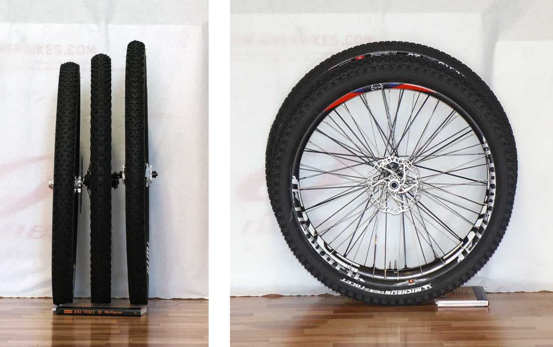 А далее поговорим о протекторе покрышки. Бывают слики, полуслики, с инвертированным протектором, и с шипами. Закономерность следующая: чем агрессивней протектор тем лучше проходимость и контроль байка на бездорожье, но более тяжелое педалирование при езде по хорошим асфальтированным дорогам. Дополнительно ко всему, при использовании шипастых шин на асфальте вы значительно уменьшаете их ресурс, ведь стираются они очень быстро. Следовательно для езды по городу подбирайте более гладкие покрышки, для бездорожья — с шипами.