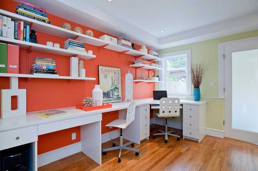 Если в семье два ученика, то для каждого из них нужно обустроить собственное рабочее место. Если позволяют размеры комнаты, можно установить два письменных стола. Но что делать, если площадь не позволяет использовать такой вариант? Можно воспользоваться одним из эффективных решений, установив двойной стол различной конфигурации: