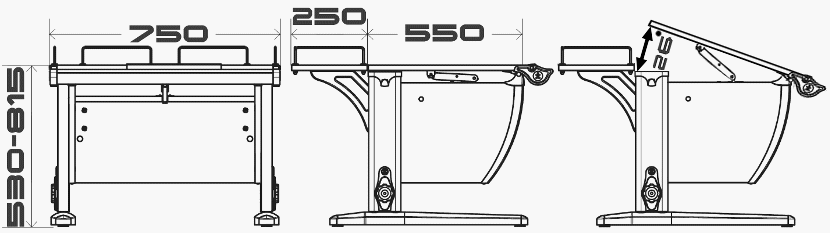 Размеры столешницы достаточные для комфортного использования, а сама она в некоторых моделях сделана откидной. Возможность регулировки угла наклона рабочей поверхности позволяет соблюсти медицинские рекомендации. К такому столу придётся дополнительно приобрести стеллаж или полки.