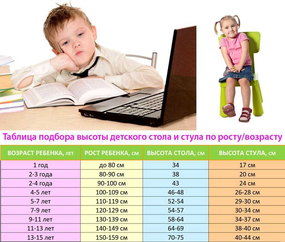 Таблица соотношения высоты мебели по росту и возрасту ребенка