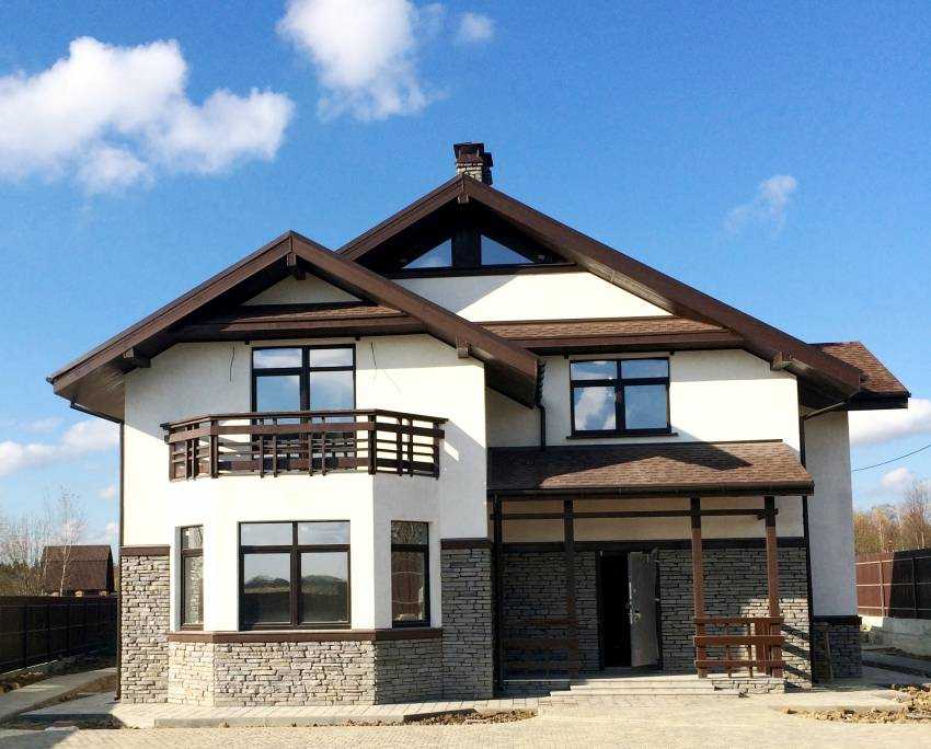 Оформление фасада дома штукатуркой «короед». Фото частных домов
