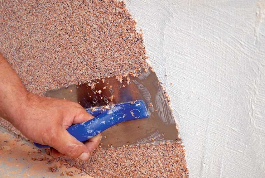 Фактурная штукатурка стен, фото наглядно отображают процесс нанесения, является финишным покрытием, которое наноситься тонким слоем, немного превышающим диаметр гранул. Поэтому основание перед нанесением фактурной штукатурки следует хорошо очистить, заделать все трещины и впадины, выровнять и прогрунтовать.