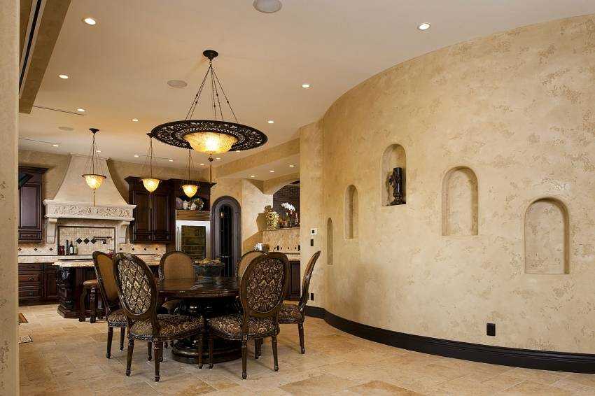 Очень часто для оформления уникального интерьера, фактурная штукатурка для стен, фото в сети Интернет наглядно это подтверждают, комбинируется с другими материалами, что позволяет воплотить самые необычные дизайнерские решения.