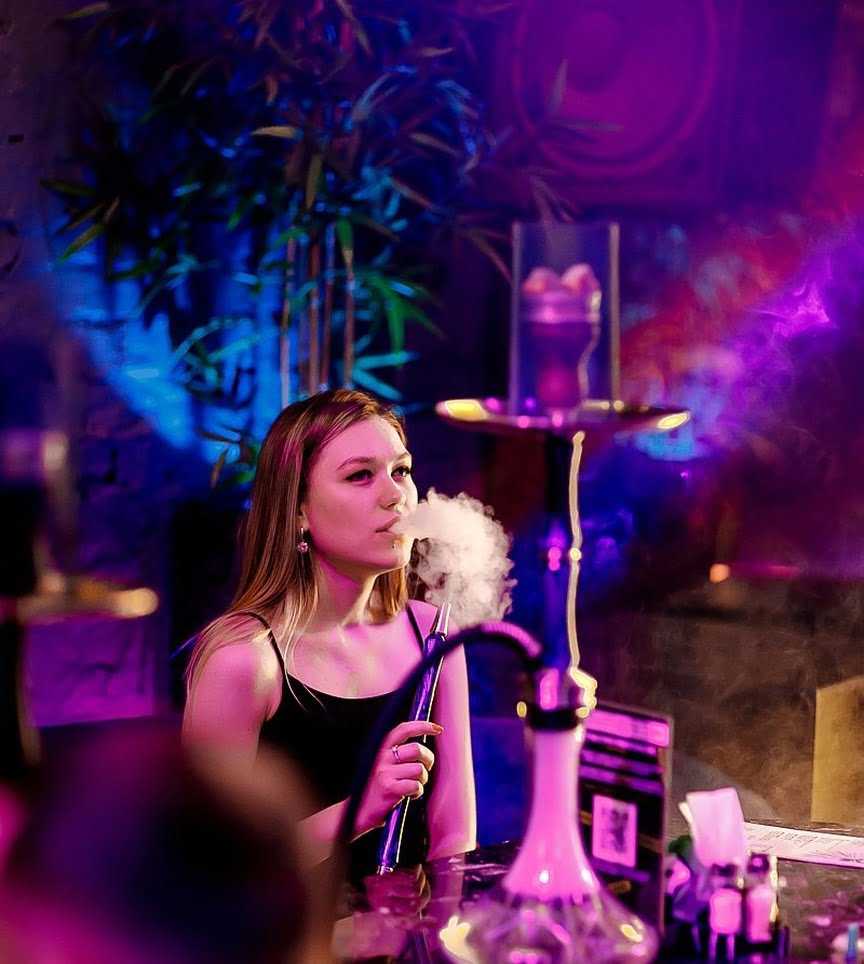 В меню большой выбор позиций европейской кухни: тар-тар (от 16 рублей), салаты (от 14 рублей), бургеры (от 16 рублей), роллы (от 16 рублей), десерты (от 7 рублей). Перейдем к кальянам: классический – 32 рубля, премиум – 37 рублей, фруктовый – 55 рублей.