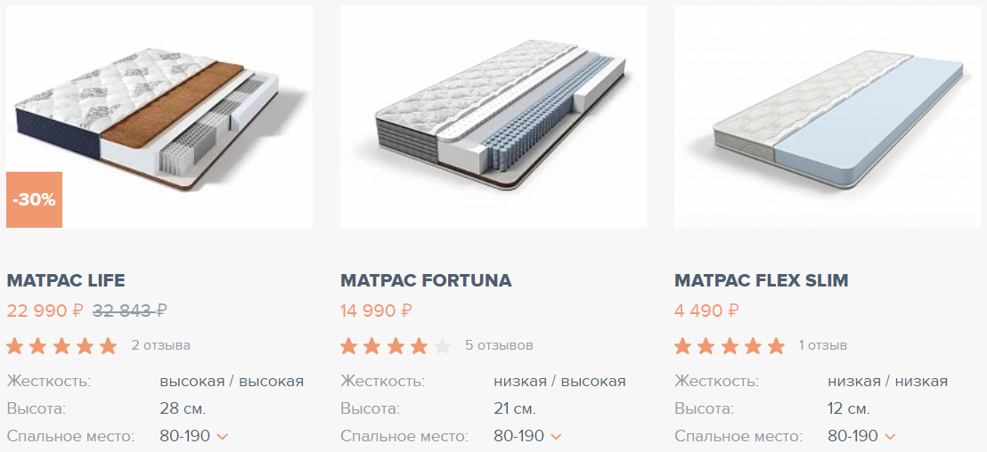 Слишком низкая цена – свидетельство некачественного матраса, который быстро деформируется и придет в негодность.