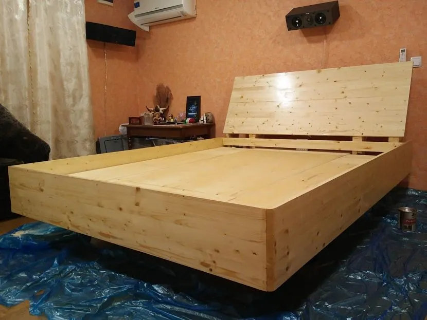 Листы из фанеры, которые в дальнейшем будут использоваться для полной комплектации кровати помимо ошкуривания дополнительно покрывают декоративными веществами и пропитками, защищающими поверхность от вредных внешних воздействий. На кровать такую панель кладут уже после полной просушки. Ее могут закреплять или просто герметично укладывать. Так как цельный лист намного тяжелее, то он хуже проявляет свои ортопедические свойства.