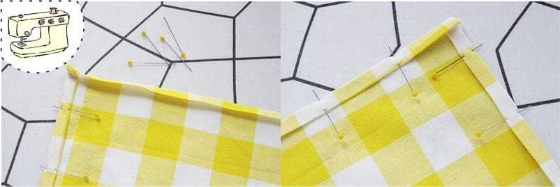 Это очень простой и традиционный способ без обработки углов. Но в данном случае подшивка уголков и не нужна, ведь это не сервировочный текстиль, а «рабочий».