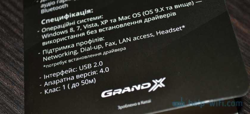 Самые популярные, недорогие и распространенные – USB адаптеры. На вид они как обычная флешка. Есть очень маленькие, которые отлично подходят как для ПК, так и для ноутбуков. Для своего компьютера я купил один из таких адаптеров – Grand-X Bluetooth 4.0. Выглядит он вот так: