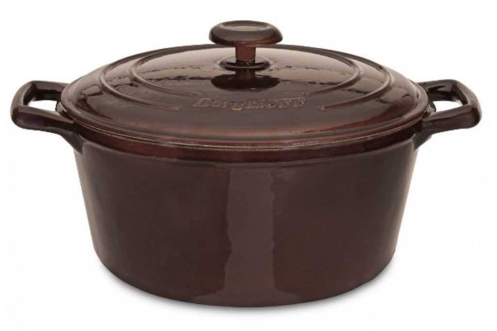 Изделие от бельгийского бренда. Чугунная посуда, надежно сохраняющая тепло, что необходимо при тушении и томлении блюд. Плотно прилегающая крышка хорошо удерживает влагу, сохраняя сочность продуктов. Внутренняя часть имеет гладкое эмалевое покрытие, позволяющее использовать минимум масла или жира. BergHOFF Moon сочетает в себе стильный внешний вид и долговечность материала. Широкие боковые ручки имеют удобную для захвата форму. Подходит для любого типа плиты, включая индукционную. Диаметр верха 20 см. Вес – 5,45. Средняя стоимость составляет – 3 800 руб.